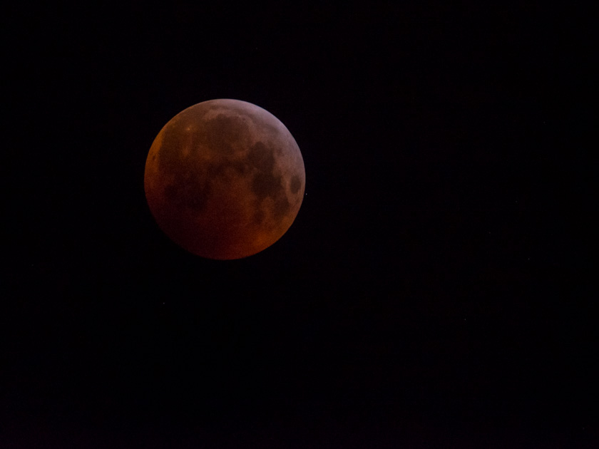 Amsterdam, The Netherlands - January 21, 2019: Super blood wolf moon, moon eclipse on sky