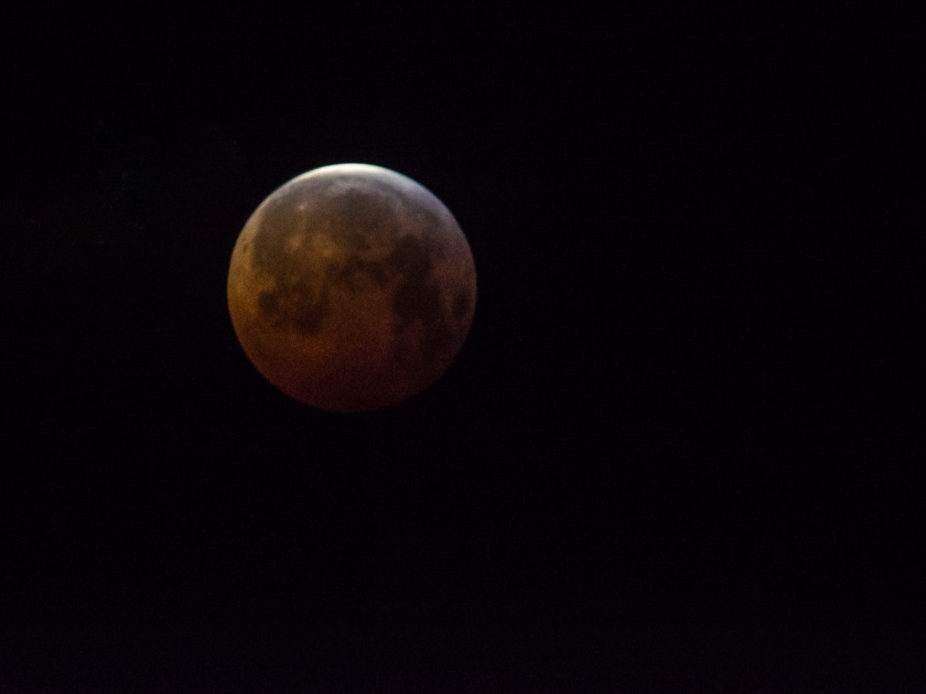 Amsterdam, The Netherlands - January 21, 2019: Super blood wolf moon, moon eclipse on sky