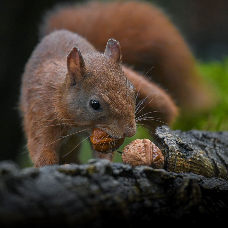 Red squirrel collecting nuts