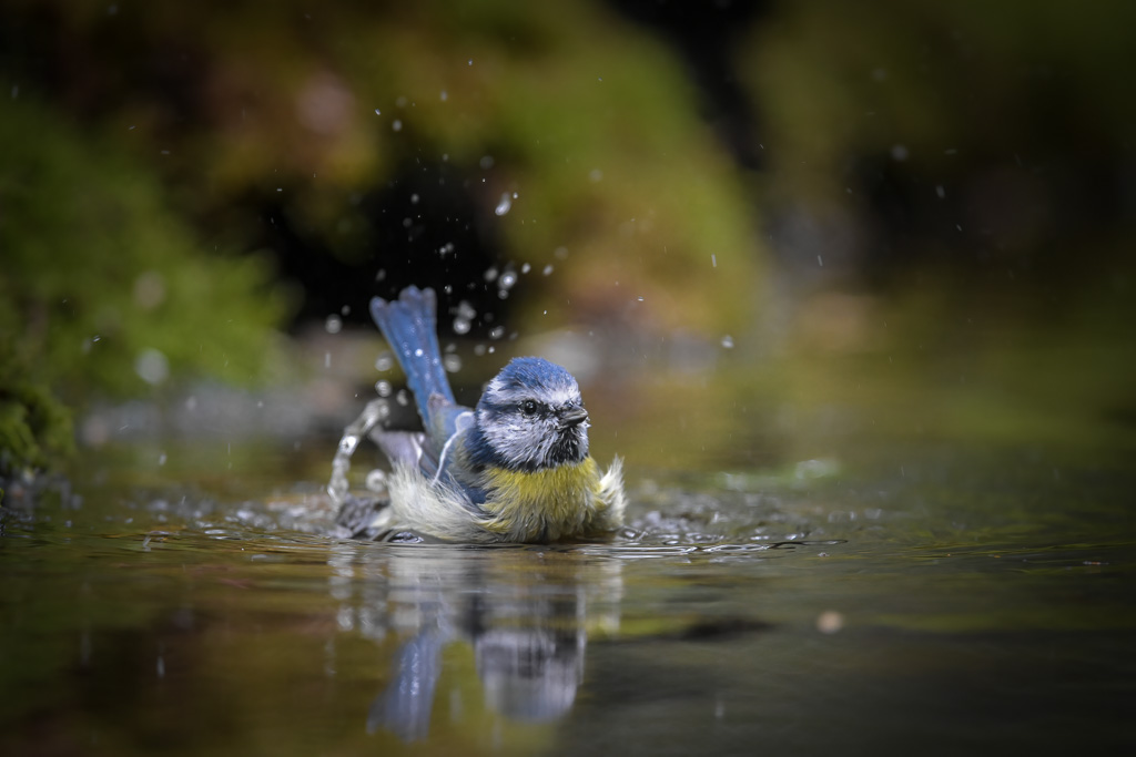 Blue tit bathing